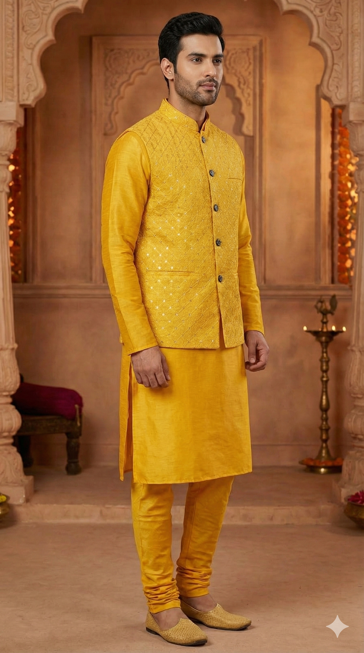 Elevate your ethnic wardrobe with this premium men's kurta pajama set, crafted for those who appreciate refined traditional wear. Featuring superior fabric quality and meticulous tailoring, this ensemble delivers both comfort and sophistication for festive occasions, celebrations, or everyday elegance. The thoughtfully designed silhouette ensures a flattering fit while maintaining authentic styling. Perfect for making a distinguished impression at weddings, religious ceremonies, or cultural events.